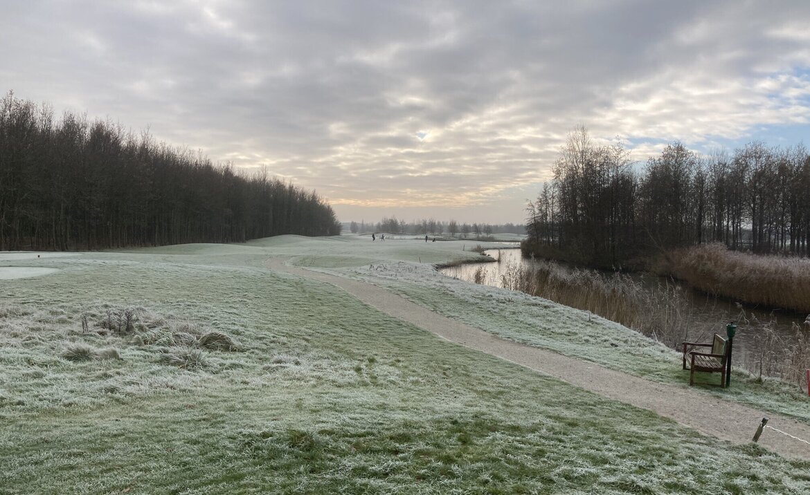 Een echte winter wedstrijd deze zaterdag op Bentwoud. Na een ijskoude nacht kreeg de baanconditie code rood. Dit betekent alleen draagtassen, wintergreens en verplicht optieen door de baan. De wintergreens op Bentwoud zijn voorzien van grote holes(emmers) en dus was de verwachting dat je zeer laag moest scoren om in de prijzen te vallen.