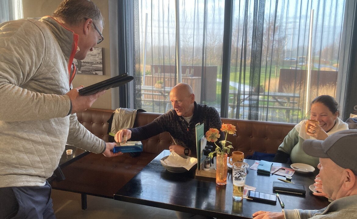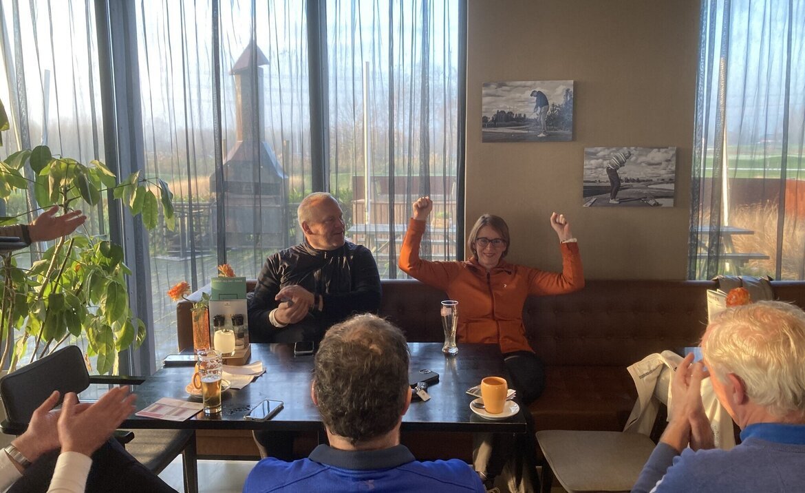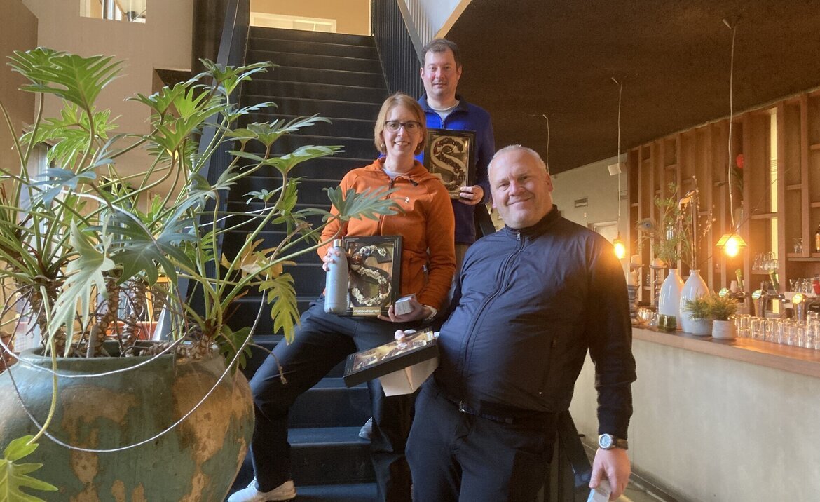 De winnaars bleken in 1 flight te zitten. En ze hadden netto ook alle drie dezelfde score. Bij GVN kijken we dan naar de handicap. En dus werd Geert met 62 netto derde. Marloes met dezelfde score tweede en zoals we inmiddels gewend zijn werd Jeroen eerste. Alle drie mochten weer een mooie prijs uitkiezen en de Sint had als extra prijs voor alle drie een zeer grote chocoladeletter.