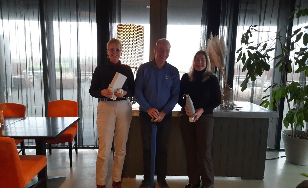 Op de derde plaats met bruto 99 en netto 55 Karin Minke. Tweede plaats voor lokale speelster Conny Van Leeuwen. Met een 81 bruto ook een 55 netto. Maar de kampioen deze ronde is Bas Fick. Met een 83 bruto kwam hij met 52 netto binnen. Gefeliciteerd met jullie geweldige scores. En ook de andere spelers die onder par binnen zijn gekomen. Jammer dat het niet qualifying was. In de zomer nog maar een keer proberen.....