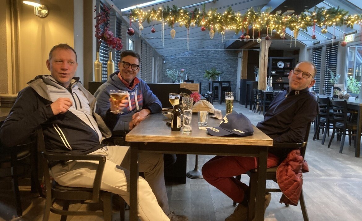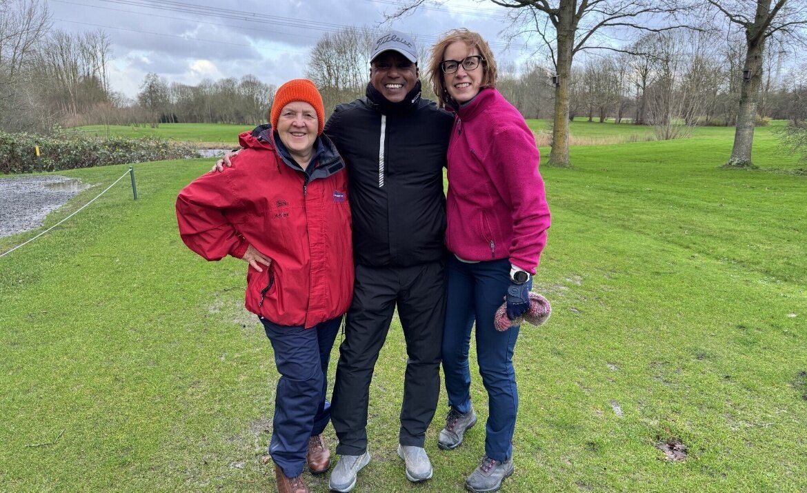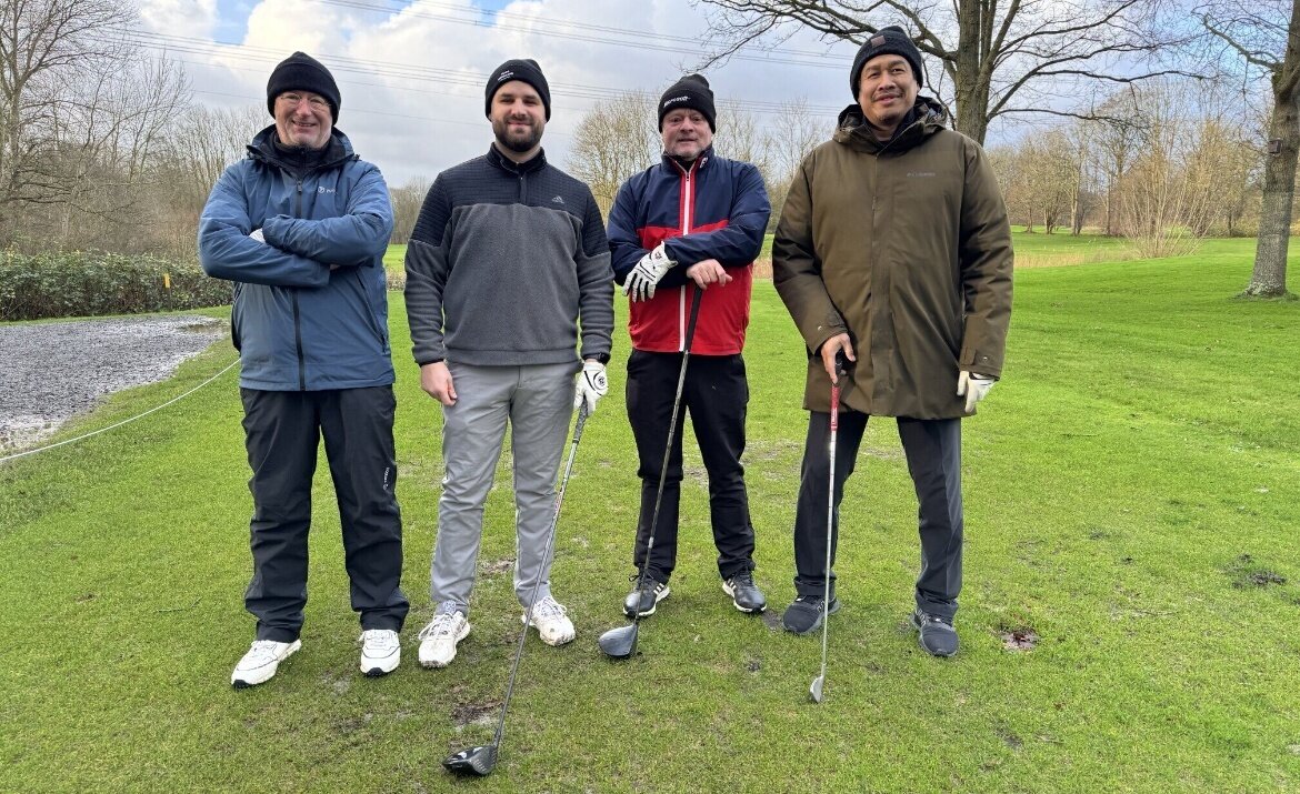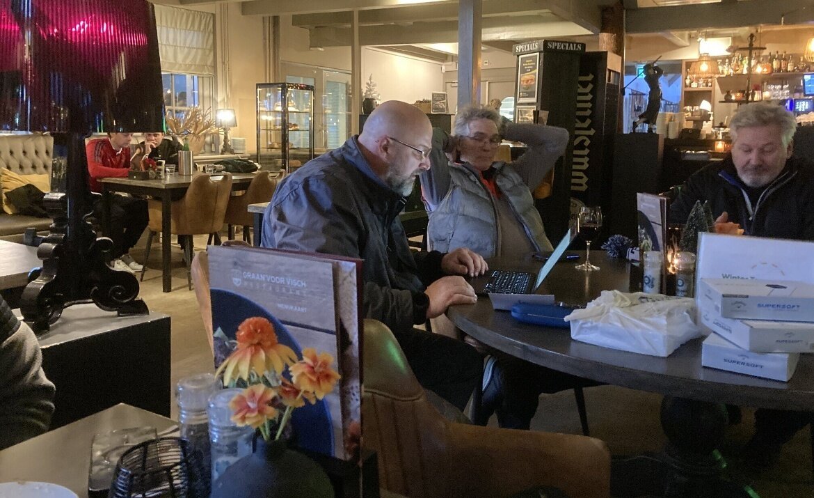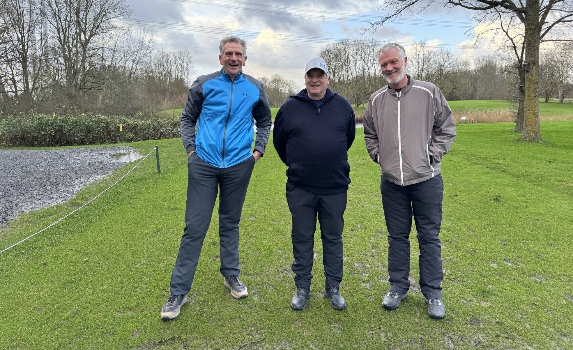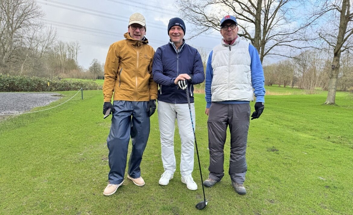 Het leek wel Mud Masters! Of Strong Viking Obstacle Run! Of Spartan Dirt Challenge! Maar nee, het waren gewoon 17 dappere GVN'ers die de ondergelopen golfbaan Spaarnwoude trotseerden. Bal op de fairway, in de rough of in de waterhindernis maakte geen verschil: je moest die steeds eerst vissen of uitgraven. Zoeken naar een droog plekje voor een gratis drop was nutteloos. Dus gewoon weer terugleggen op een atol van een grassprietje of modderhopje, en boom-splash! Gezicht vol modderspatten en bal weer een paar meter vooruit. Ondertussen kroop de modder langs de regenbroek naar je sokken en in de schoenen. Gelukkig regende het maar een paar holes ijsregen en hagel, en was de wind maar 5-6 Beaufort zwak. Precies wat je verwacht van het laatste winter tour rondje van 2024. Genieten!