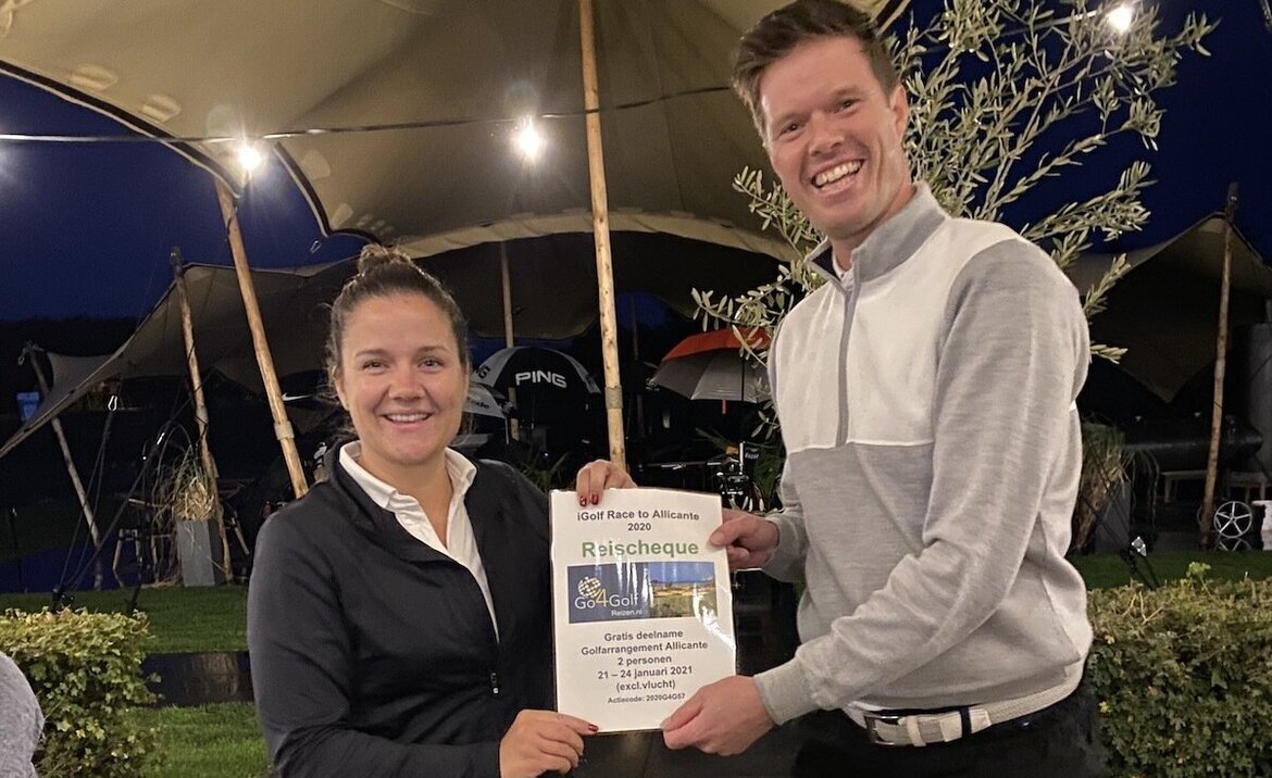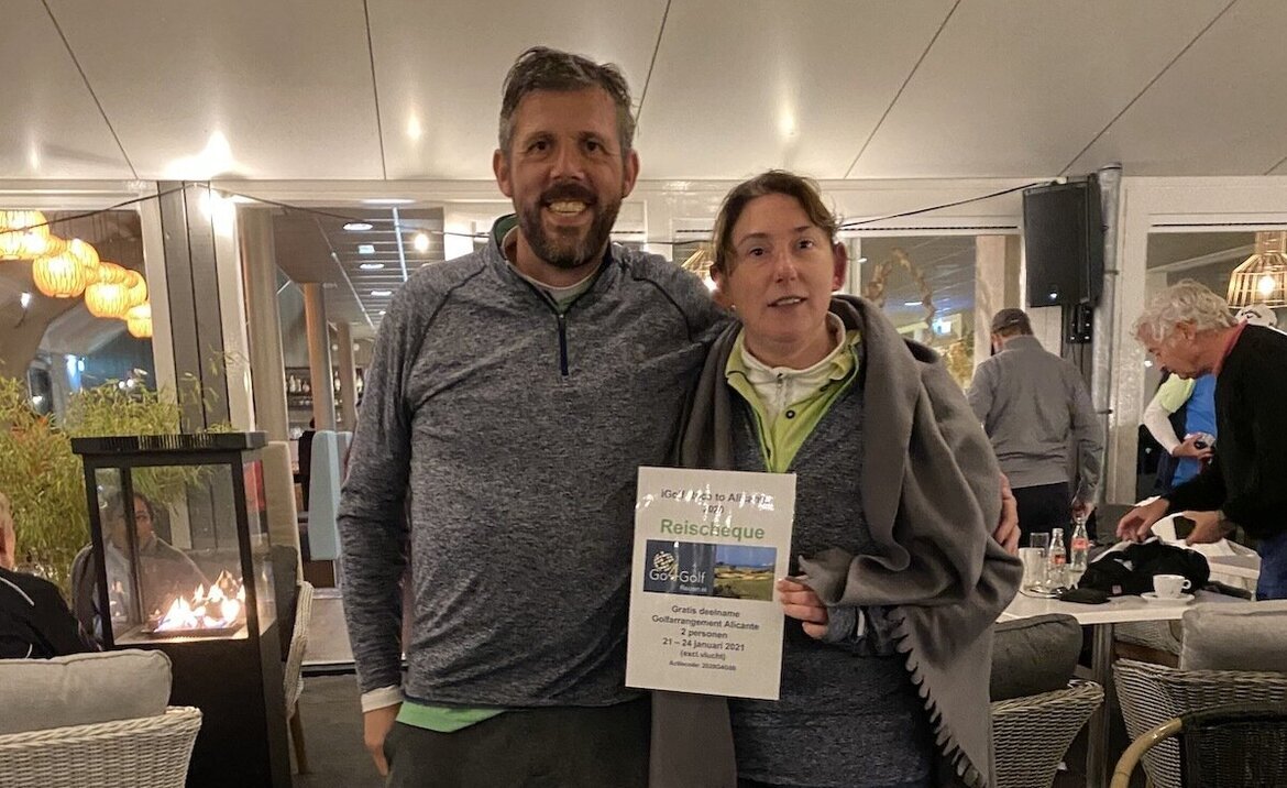 De eerste hoofdprijs was voor het koppel dat deze finalewedstrijd zou winnen. Jos Vos en Sophie van Besouw kwamen dichtbij met een score van +3 maar daarmee moesten zij uiteindelijk genoegen nemen de derde plaats. Patrick Goen en Marije Siteur deden het net iets beter met +2 en kort daarna kwamen Stevan Aldershof en Sabien van Doornmalen binnen met dezelfde score. En omdat beide teams ook nog dezelfde Personal Par hadden, moest het resultaat over de tweede 9 holes de doorslag geven. Hierop hadden Patrick en Marije het 1 slag beter gedaan en dus mochten zij de eerste cheque voor gratis deelname aan het eindtoernooi in Alicante in ontvangst nemen.